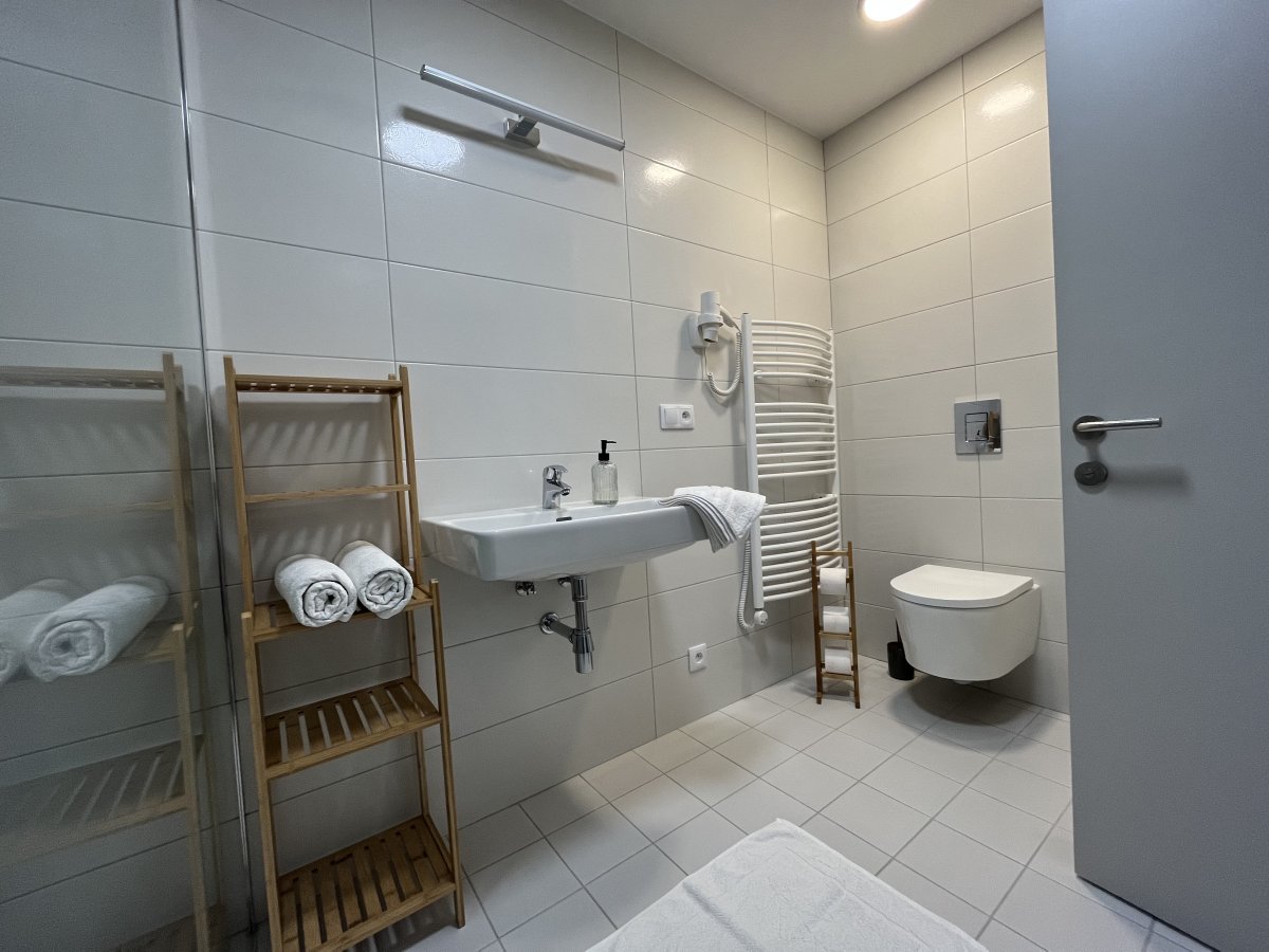 Součástí každého apartmánu je kuchyňský kout se všemi nezbytnými elektrospotřebiči (lednice, mikrovlnná trouba, sklokeramická deska, varná konvice), jídelní kout, vlastní prostorné sociálním zázemí s WC, sprchovým koutem a fénem, LCD televizor s digitálním vysíláním, WIFI internet připojení. Pro Vaše maximální pohodlí jsou apartmány vybaveny kvalitním hotelovým textilem (osušky, ručníky, povlečení) a všechna hlavní lůžka pak protialergickými matracemi vyššího standardu.