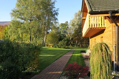 Upravené plochy kolem domu Vám umožní diskrétní nerušenou relaxaci.